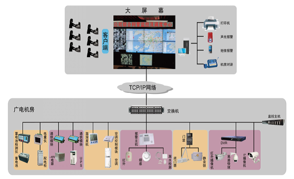 路通研發的廣電機房監控系統一般都為三級監控,視頻監控、門禁監控、動力環境、設備監控在統一的平臺下融為一體, 完整的C/S和 B/S 結構,采用現場采集單元+分監控中心+監控中心模式。用戶可以按照自身實際需求選擇系統構架及功能模塊,設備配備靈活方便。