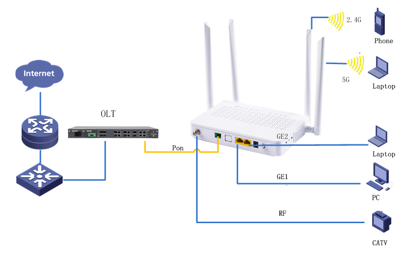 Support fast transmission of hardware NAT Hardware Specifications         interface: 1* G/EPON+2*GE+2.4G/5.8G WLAN+1*RF